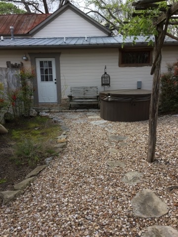 I shared this news with Kris, and as you could expect she was delighted. We finished unpacking and grabbed some cold beer and went outside in the backyard to check out the hot tub and patio area. I was ready for disappointment, I had been primed. The outside was actually beautiful. The plants were a bit overgrown, but it is spring and it had been raining the last week or so. The hot tub was covered and upon lifting the cover and testing functions, everything worked well. The tub itself had the standard amount for gravel from careless use and there was staining from the cover but nothing a Clorox wipe couldn’t overcome… fortunately we brought our own.