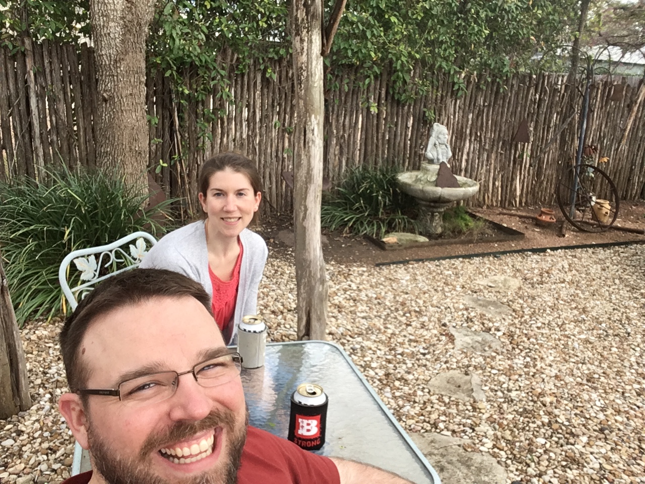 Several beers later and Kris and I were ready for the hot tub. It was a fairly warm evening as far as hot tubs are concerned, but we enjoyed it nonetheless and the starry skies above were gorgeous. We have stayed out in some remote locations in the hill country and have even done some limited astrophotography of those dark skies. I always thought Fredericksburg would be to bright with light pollution, but I may stand corrected. I think I could do some long exposure star trails with success here off of main street, as long as no porch lights or anything are present.