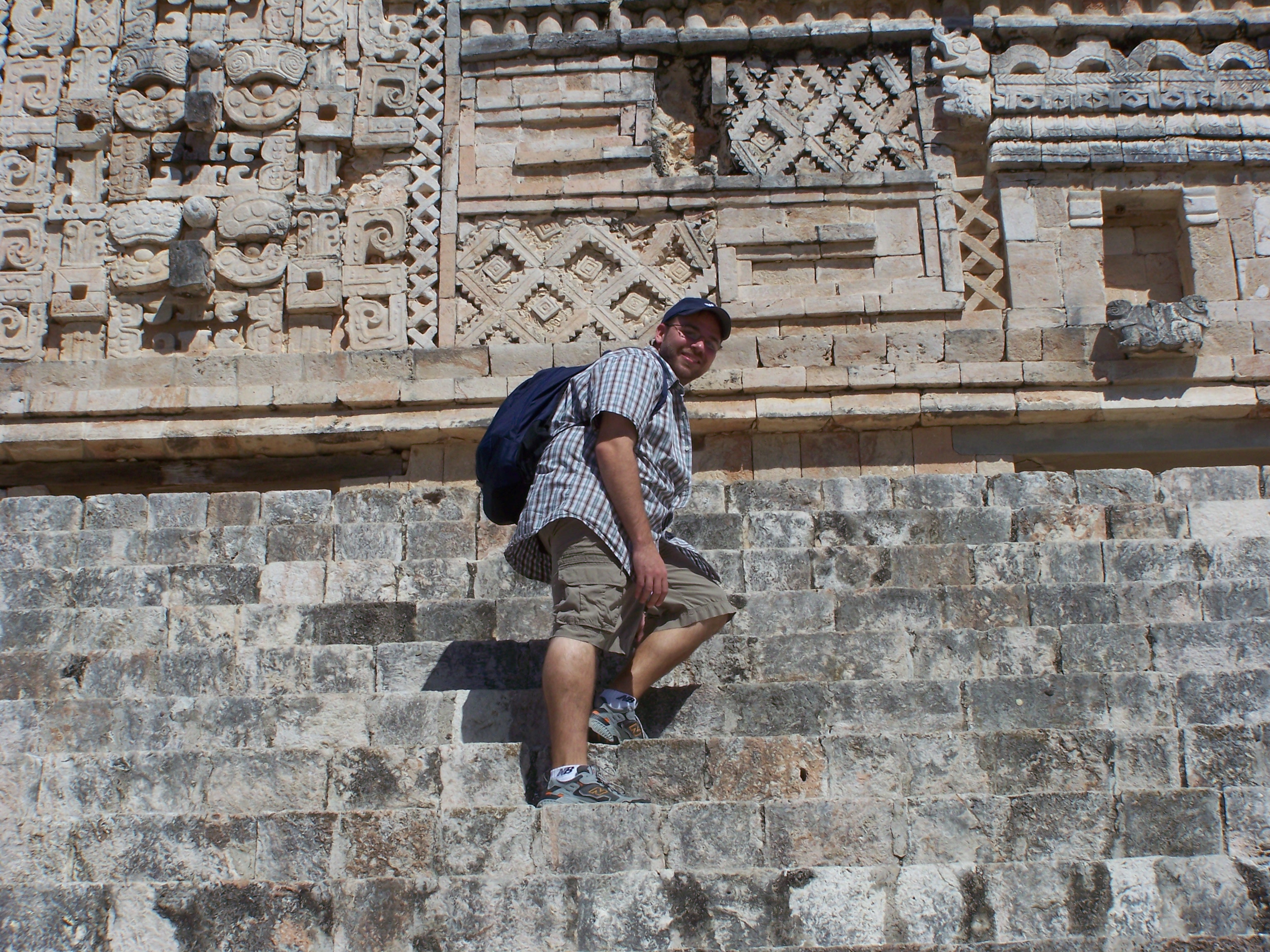 Several years back, Kris and I found ourselves on the Yucatan Peninsula with some time to kill. We decided we would check out the ancient Mayan Ruins of Uxmal. On our past journeys on the Yucatan, we had declined to visit Uxmal and instead chose the white sand beaches of Isla Pasion. So it was with a sense of adventure and sobriety that we spent almost two hours on a bus from the Port of Progresso through Meridien into the great wilderness that is Uxmal.