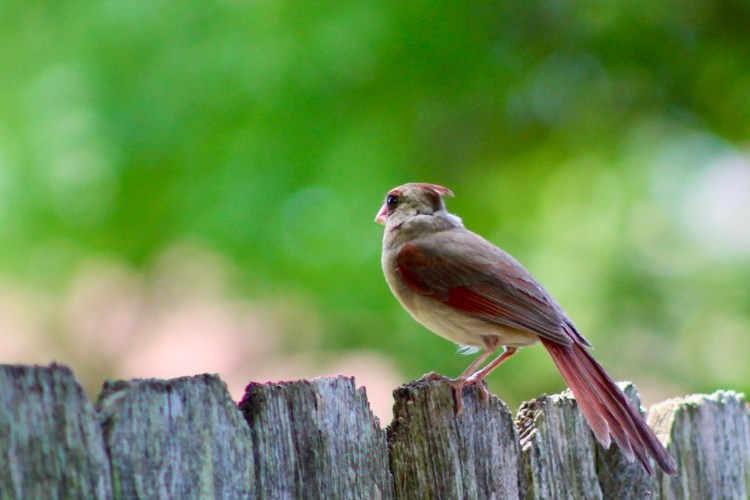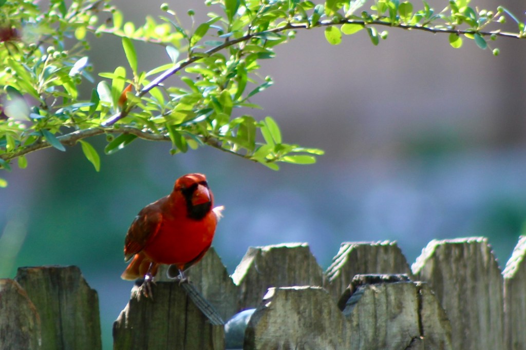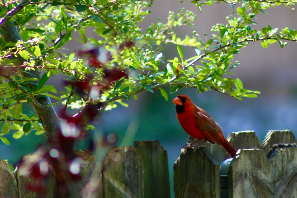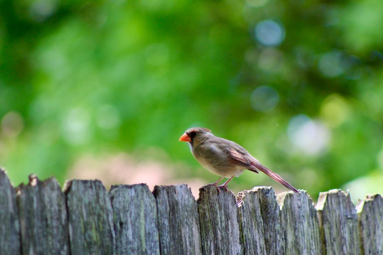 After a few minutes of relaxation, both a female and male Northern Cardinal appeared. They landed too far apart to capture them both in a single image so I focused upon the female. This particular cardinal had the most beautiful red and grey highlights and astonishingly bright orange beak. She sat on the old fence for what seemed like an eternity.