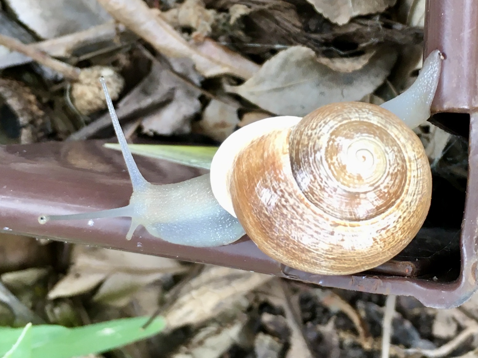 I’d be lying if I said I was some kind of “Helix Aspersa” expert, but I may know a thing or two. As a budding mollusk aficionado, I’ve come to learn that this specimen is in fact the most common garden snail in the western world and is known as a “European Brown Garden Snail.”