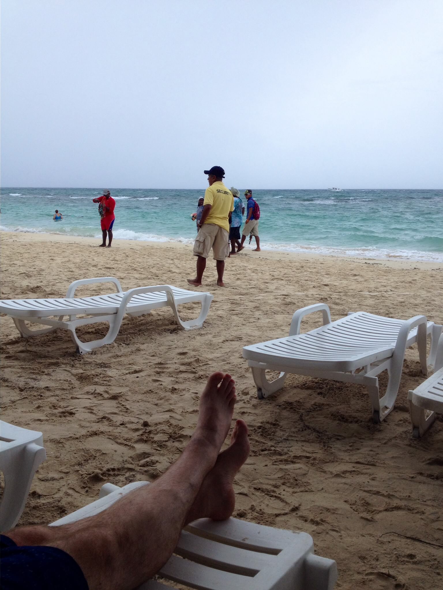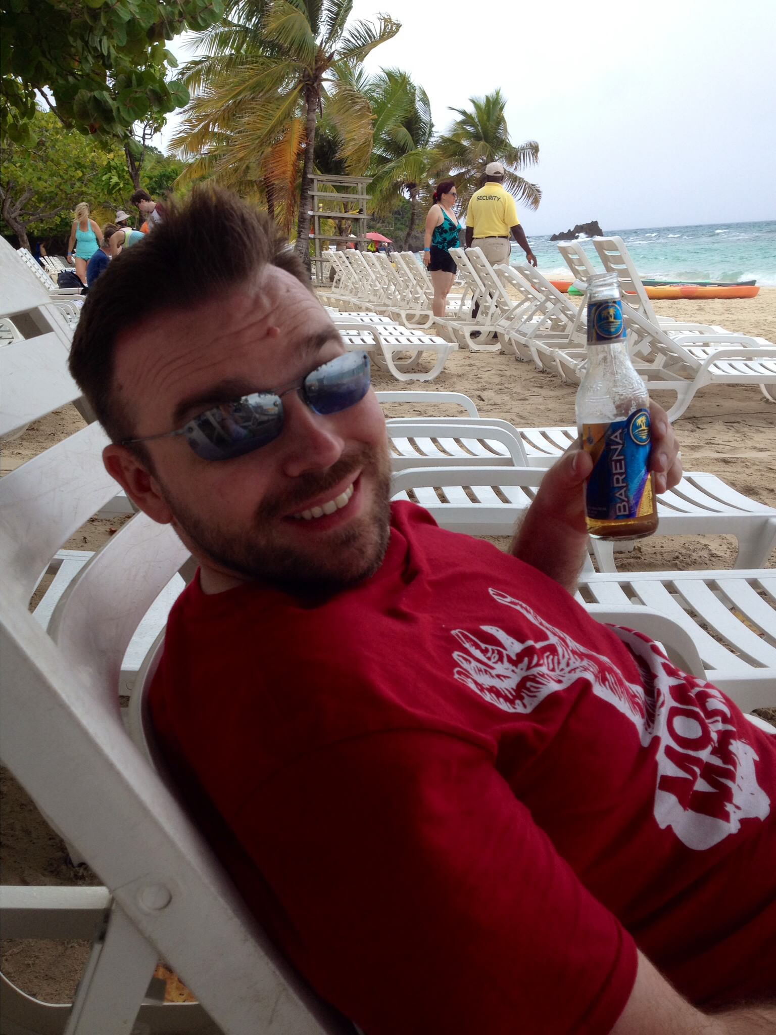 During this particular trip to the island, there was a squall brewing miles off the coast which gave us fairly overcast skies, choppy seas and a heavy scent of rain on the breeze. The incoming storm had slowly chased all the other tourists from the beach and left Kris and I to enjoy the atmosphere in privacy. If I’m not mistaken, we spent about two to three hours lounging in our chairs enjoying cold Barena Beer from the bar. Eventually, the storm was close enough that the locals began to shutdown the shops and rental facilities. At that point both Kris and I decided we ought to catch the last bus back to the port.