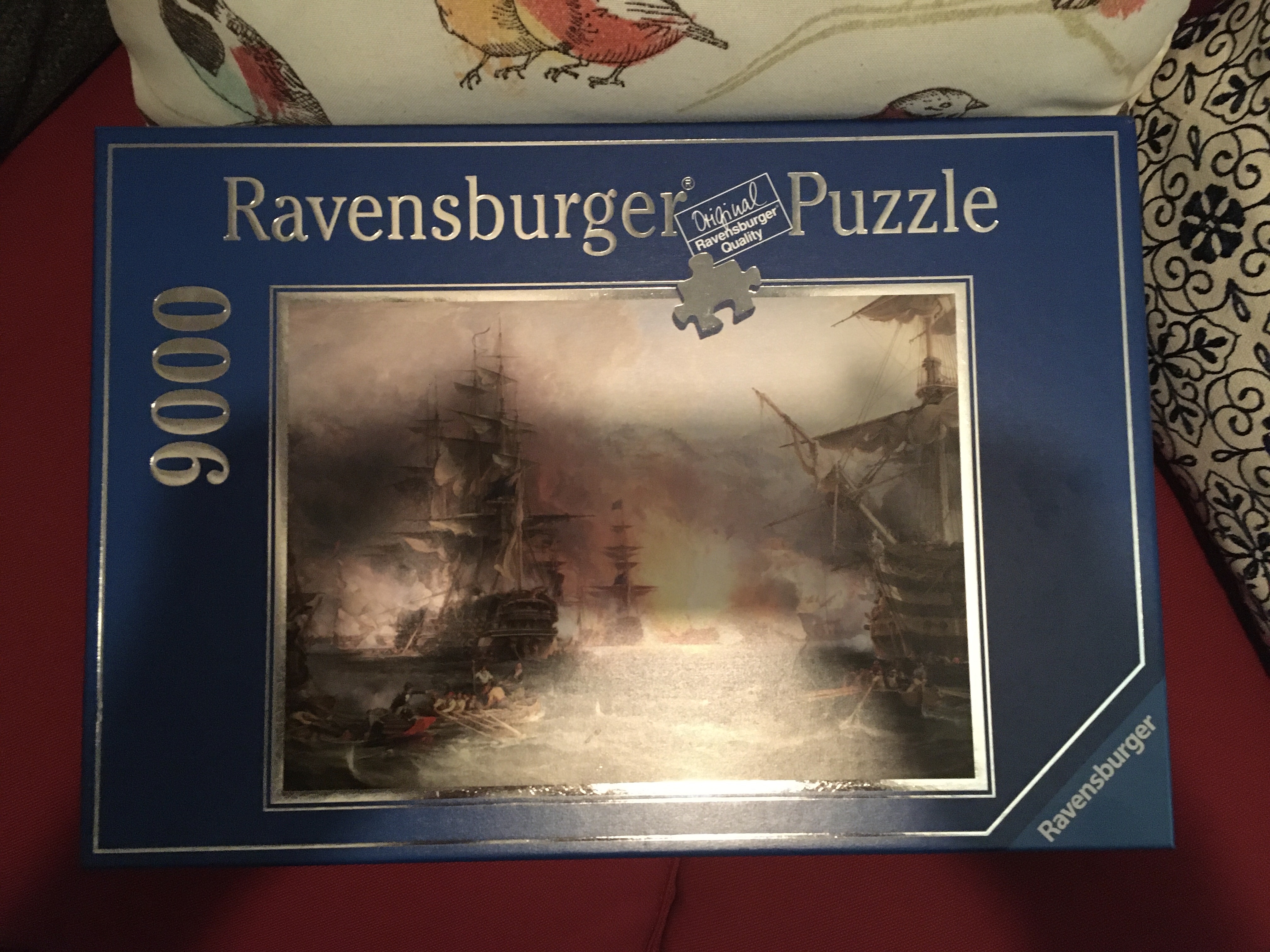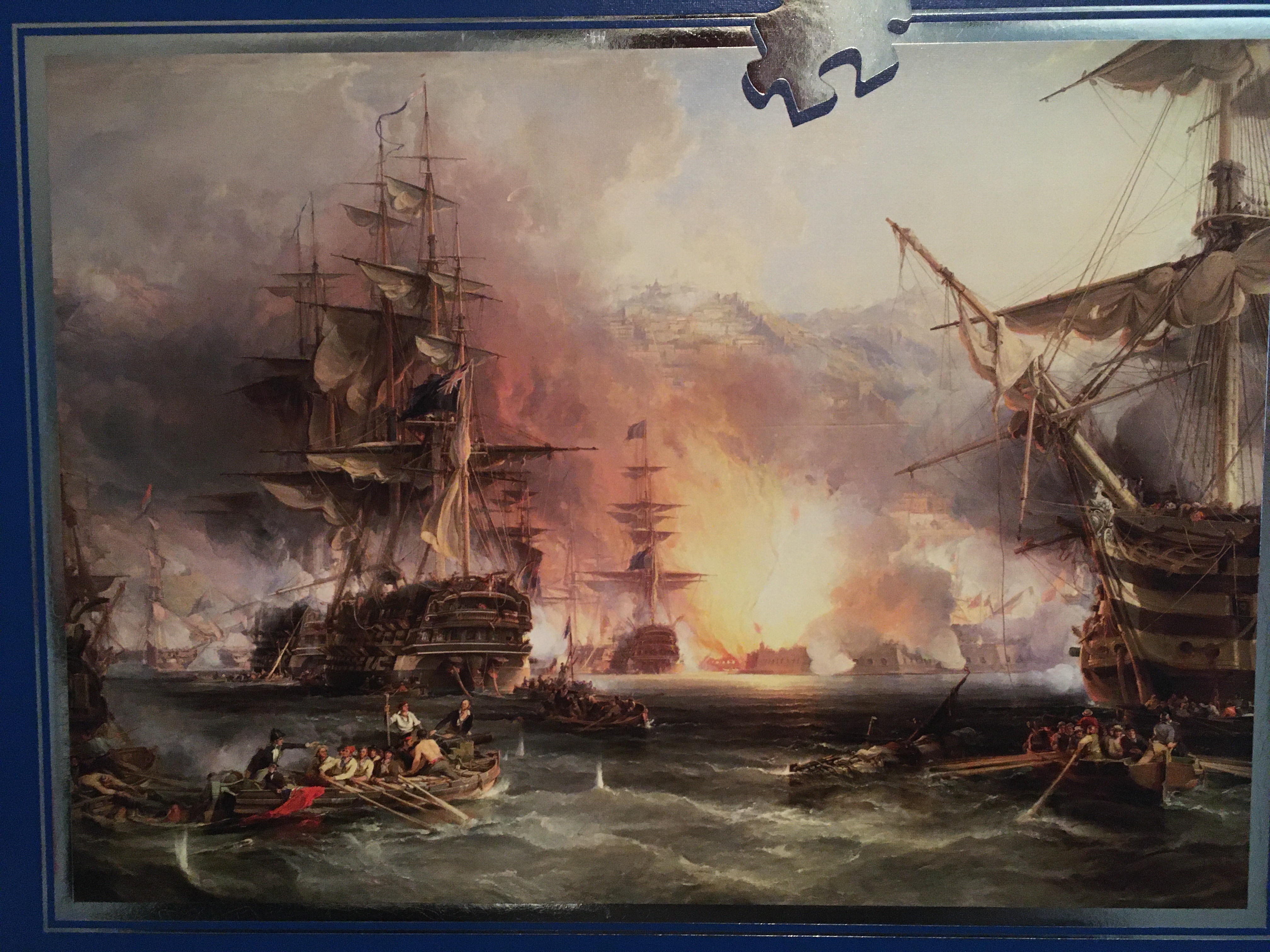 The Ravensburger “Bombardment of Algiers” measures an impressive 6×5 ft. and upon completion will proudly hang in the media room adjacent to the previous 5k puzzle.