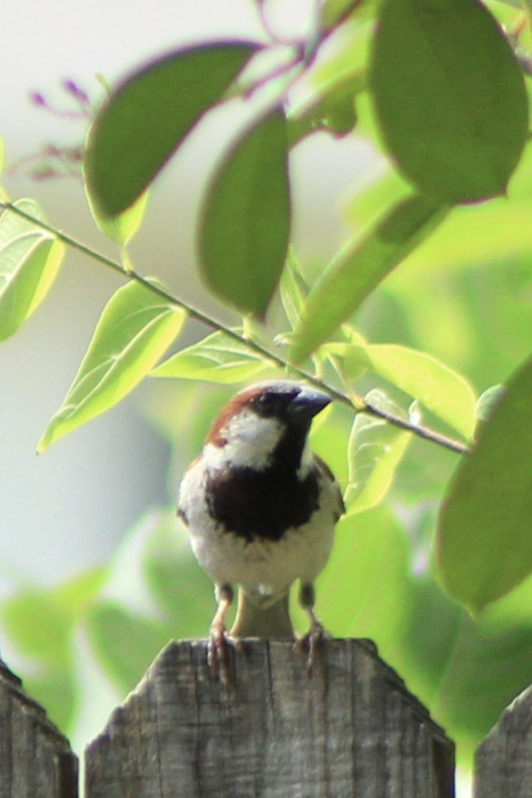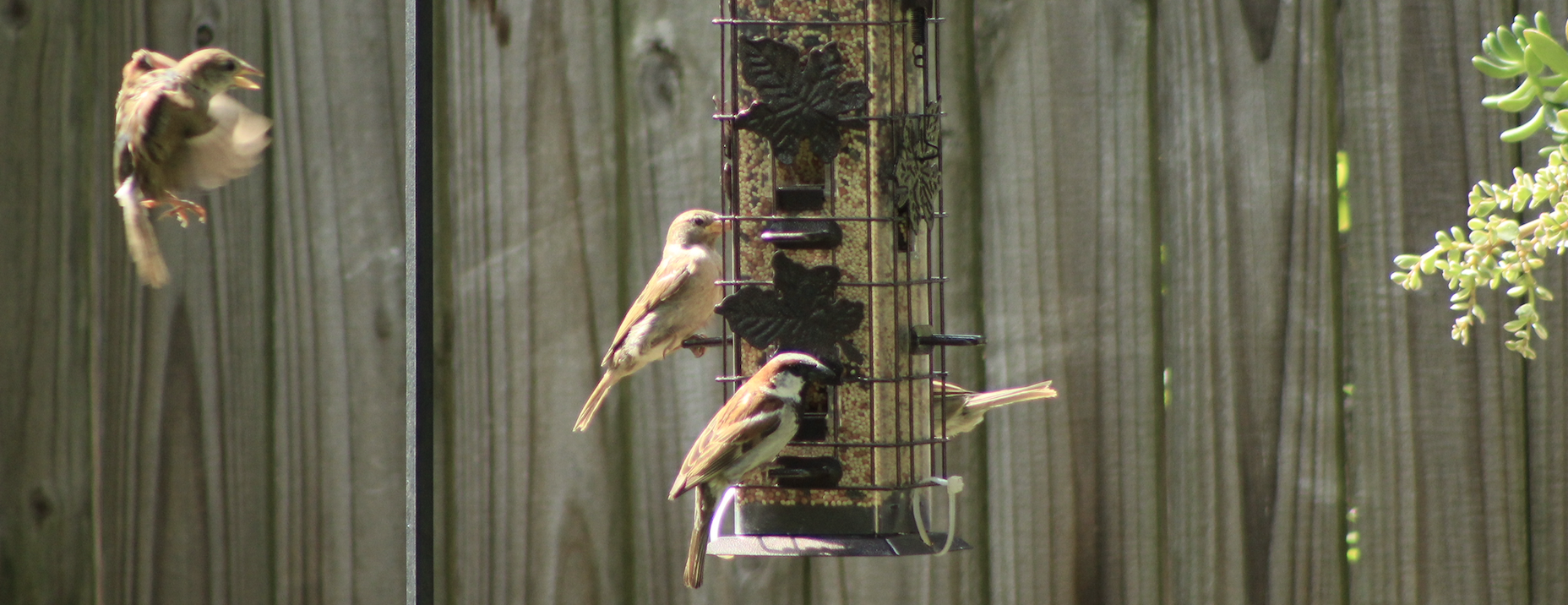 I’ve got sparrows coming out of my… trees! The level of activity around the bird-feeder is absolutely out of control. There will consistently be four or five sparrows on the feeder and many down in the grass and garden at any given moment. I do enjoy having all the little fellows out there, but I am beginning to think they will chase off everything but that angry red finch who visits periodically.