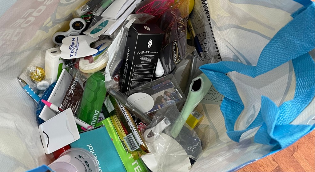 As I wandered the aisles of the trade show floor, I couldn’t help but marvel at the sheer variety of swag on offer. Pens, notepads, stress balls—all emblazoned with the logos of dental companies vying for my attention. And then there were the more unusual items, like tooth-shaped stress toys and floss dispensers that looked like miniature backpacks. It was a treasure trove of dental-themed goodies, and I was determined to collect them all.